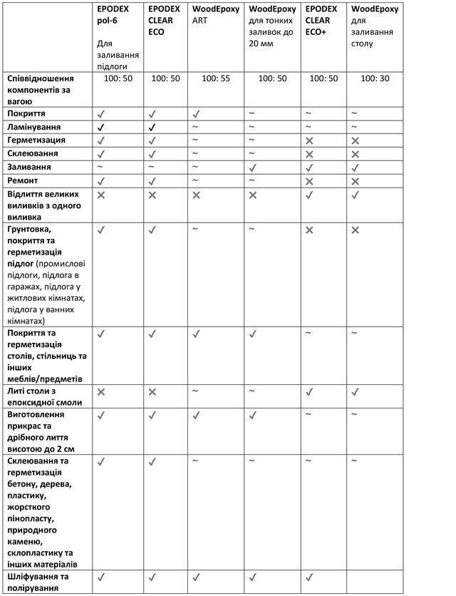 - Співвідношення змішування: 0,28 кг затверджувача на 1 кг смоли. Максимально допустима товщина заливки: 5-6 см (до 8-9 см для невеликих об'ємів).